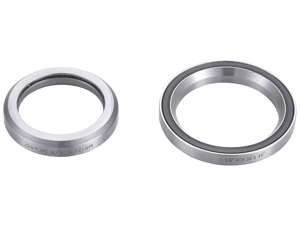 Replacement bearings set for integrated tapered headsets. Top bearing diameter: 1.1/8” – 41.0 mm. Bottom bearing diameter: 1.3/8” – 48.9 mm. 36ºx45º sealed CrMo bearings. Compatible with: BHP-455 and others with same size.