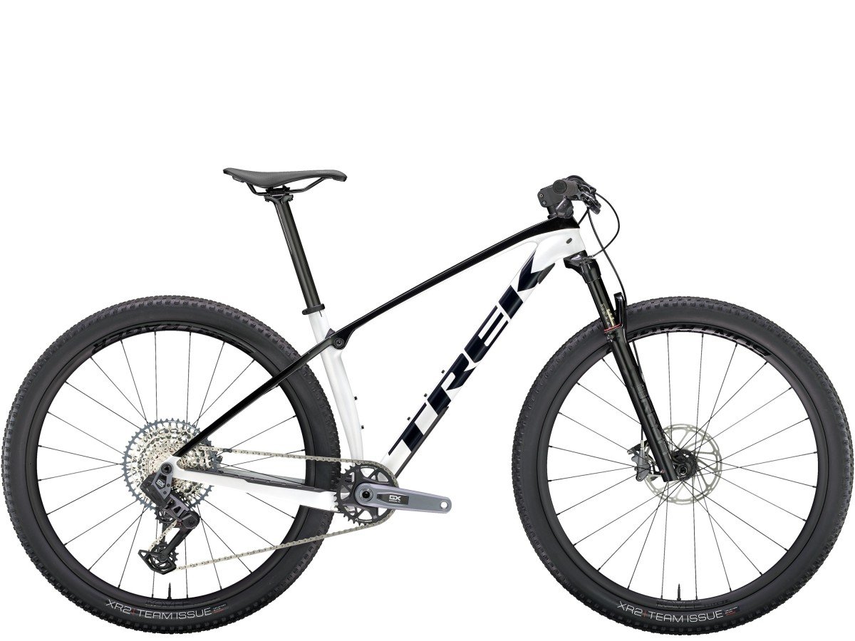 De Procaliber 9.7 is een crosscountry-hardtail gemaakt voor flitsende snelheden bij elke XC-race. De IsoSpeed decoupler in het carbon frame zorgt ervoor dat je langer fris blijft terwijl de lichtere onderdelen je een voorsprong geven op zware beklimmingen en snelle vlakke stukken. De RockShox Reba RL voorvork heeft een remote lockout waarmee je de veerweg volledig kunt benutten in de afdaling en blokkeren in de klim. Je bent ervaren op de trails en neemt regelmatig deel aan plaatselijke XC-races. Je wil verbeterde onderdelen om sneller te worden, zoals lichtere carbon wielen en een aandrijving met breder bereik om op de steilste beklimmingen je benen te ontzien. Een licht en stijf carbon frame met comfortverhogende IsoSpeed, een lichtere 110 mm RockShox Reba RL voorvork met Solo Air luchtvering, Motion Control demper en een remote lockout, een SRAM GX Eagle AXS-transmissie met extra breed bereik, snelle 29″ Bontrager Kovee Elite 30 carbon wielen en een carbon zadelpen. Een geweldige fiets voor fanatieke racers. De verbeterde voorvork en carbon wielen besparen enorm veel gewicht, zodat je sneller kunt rijden. – Uitgerust met een carbon frame, carbon wielen en carbon zadelpen voor een lichtgewicht prestatiegericht rijgedrag – De IsoSpeed decoupler versoepelt het rijgedrag ten opzichte van andere hardtails zodat je lijf niet zoveel klappen krijgt op een hobbelige trail. – Je krijgt een Straight Shot onderbuis voor een extra stijf en responsief stuurgedrag zonder extra gewicht, plus een Knock Block balhoofdset die je frame beschermt tegen ronddraaiende sturen en vorkkronen. – Carbon velgen besparen rollend gewicht, zodat je met minder inspanning sneller kunt rijden – Het SRAM GX Eagle schakelsysteem zorgt voor een superstrak schakelgedrag, zelfs onder belasting IsoSpeed-souplesse IsoSpeed haalt de scherpe kantjes van kleine hobbels en trillingen van de trail, zodat je langer fit blijft. Je trapefficiëntie blijft even hoog. OCLV Mountain Carbon Het Mountain Specific carbon van Trek is sterker carbon met unieke materiaaleigenschappen en een speciale laagopbouw. Het heeft een geavanceerde constructie en voldoet aan nog strengere teststandaards. Straight Shot-onderbuis De Straight Shot onderbuis zorgt voor een extra stijf frame bij gelijkblijvend gewicht. Je rijdt dus niet minder snel bergop, maar je houdt wel vlotter je lijnen. Je vergeet bijna je pedalen Op deze fiets zitten geen pedalen omdat je prettiger rijdt als je ze zelf uitkiest. Bekijk de pedalen-gids en vind de beste pedalen voor jouw rijstijl. Wil je pedalen voor de race? We raden MTB-klikpedalen aan voor controle en efficiëntie.